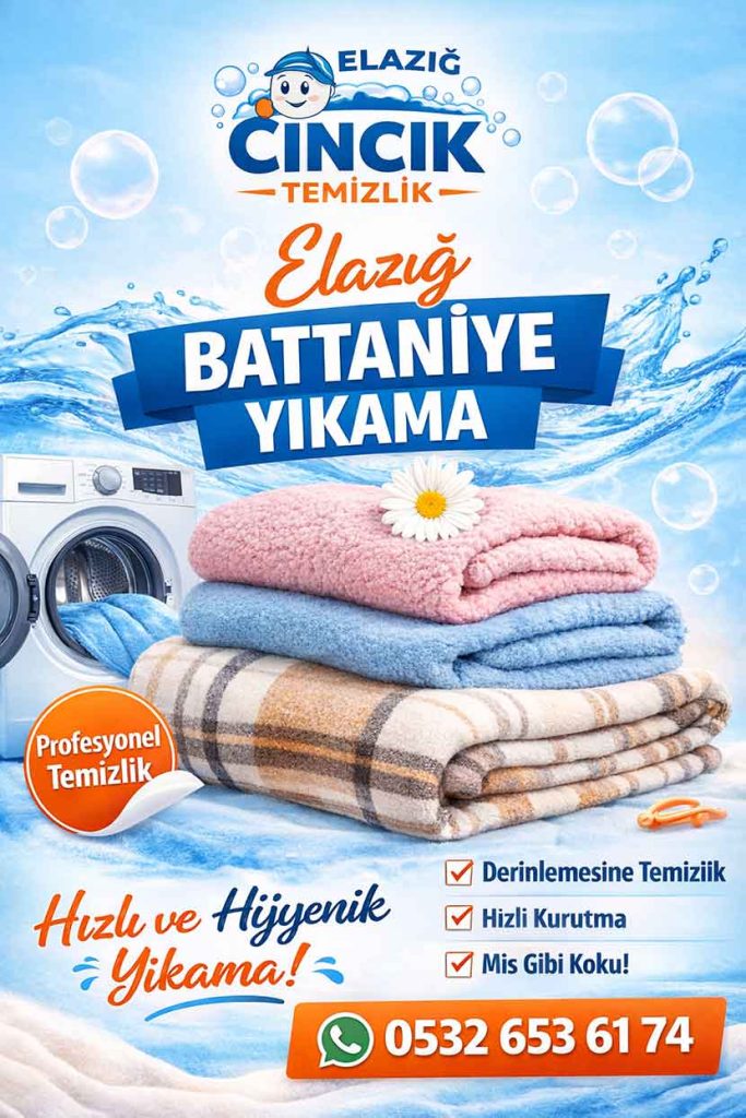 Elazığ battaniye yıkama hizmeti ile hijyenik, ferah ve sağlıklı yaşam alanlarına kavuşun. Özellikle kış aylarında yoğun kullanılan battaniyeler zamanla toz, bakteri ve kötü koku biriktirir. Evde yapılan yüzeysel temizlik yeterli olmaz. Elazığ Cıncık Temizlik olarak profesyonel ekipmanlarımız ve özel yıkama tekniklerimizle battaniyelerinizi derinlemesine temizliyoruz.
